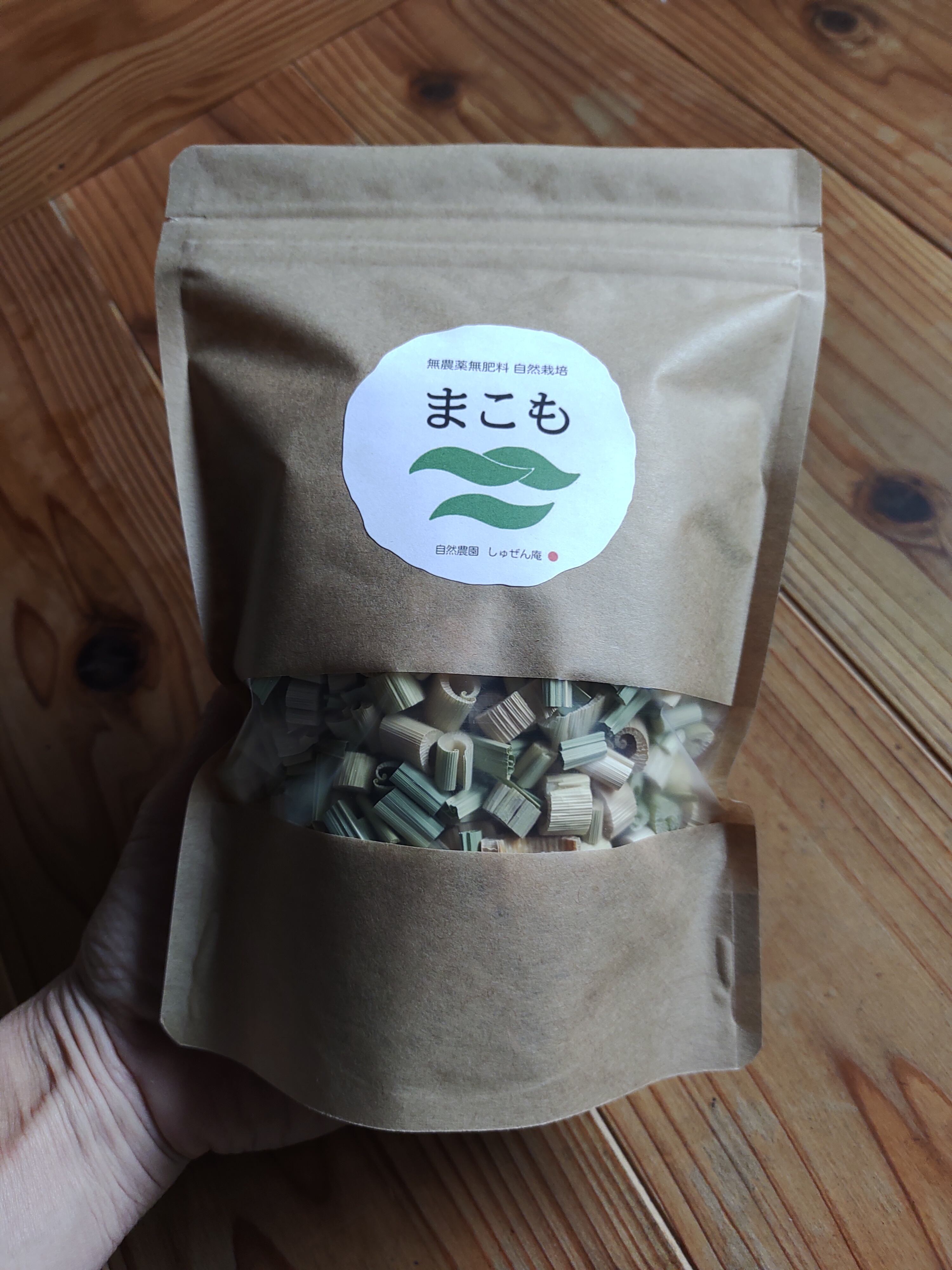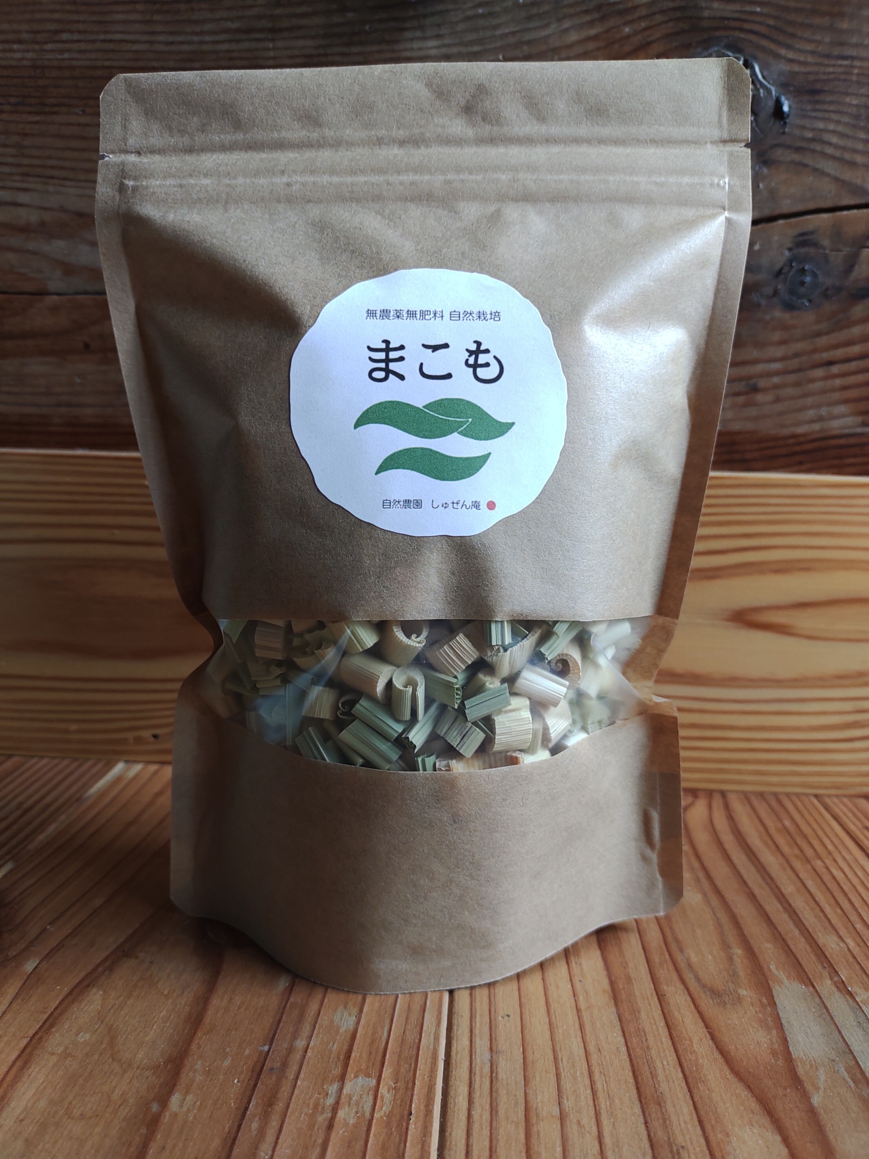 炒って煮出すとと茶色い香ばしいマコモ茶に。